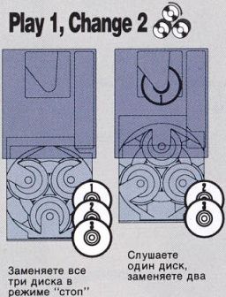 Воспроизведение одного диска, смена двух дисков. Простая смена диска на 3-дисковом вращающемся магазине СD-плейера. Вы может сменить два диска при проигрывании третьего диска. Произвольный доступ к трем дискам или программируемое воспроизведение до 24 записей с любого из трех дисков позволит Вам продлить удовольствие прослушивания музыки. 5-режимный графический эквалайзер и 3-режимный переключатель звукового поля с 7-полосным анализатором спектра. Последовательный ЦАП типа MASH и трехканальная система громкоговорителей для высокого качества звука.