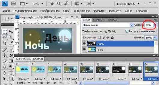 Создание анимации текста в фотошоп
