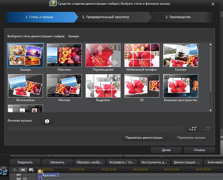 инструменты редактирования демонстрация слайдшоу ключевой кадр