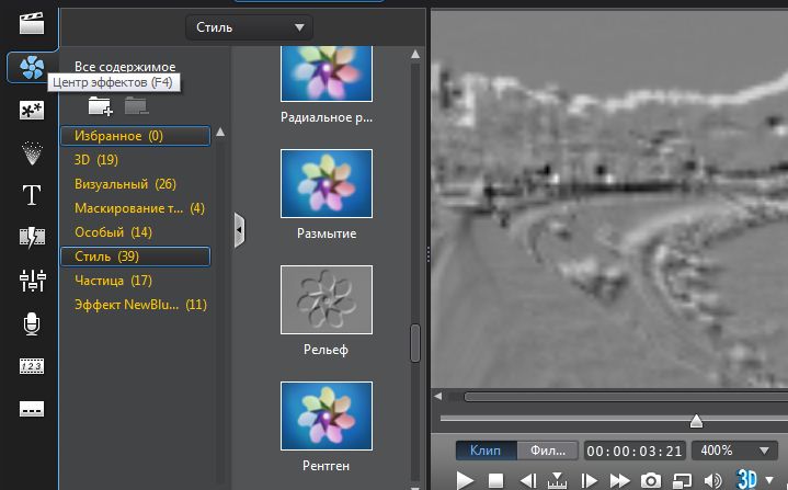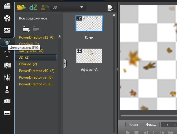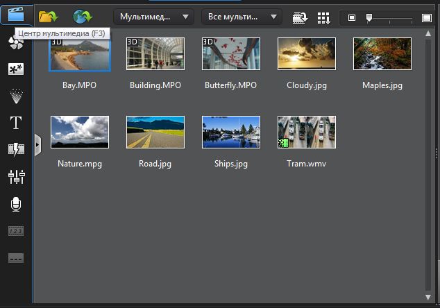 окно мультимедиа центр эффектов центр объектов центр частиц